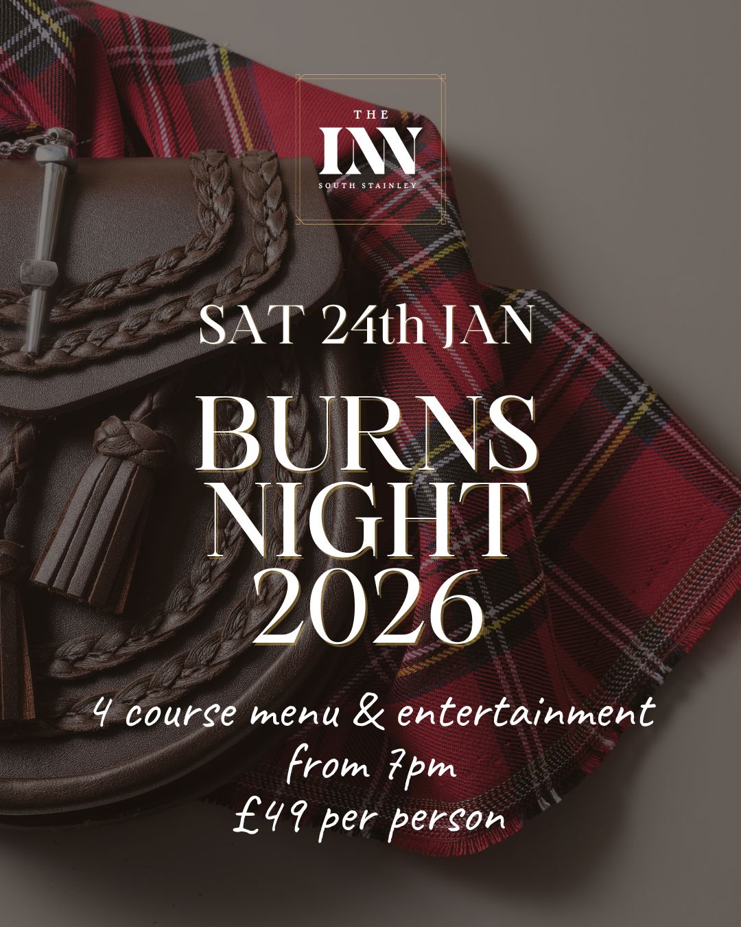 The Inn South Stainley Ripon Road, South Stainley, Harrogate, United KingdomCelebrate the life and legacy of Robert Burns with an evening of hearty food, Scottish tradition and Yorkshire hospitality. Join us for a relaxed yet atmospheric night, featuring a beautifully…